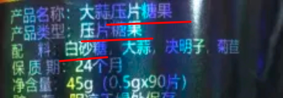 直播间兜售的很多含“蒜”产品其实是压片糖果,其成分也显示了这一点